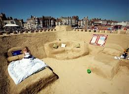 Menginap di hotel berbintang dengan fasilitas mewah merupakan hal biasa. Lantas, bagaimana jika tinggal di hotel yang terbuat dari pasir pantai? sebuah hotel pasir pantai untuk pertama kalinya di bangun di pantai Weymouth, Dorset, Inggris. Untuk per malamnya para tamu hotel harus membayar 10 poundsterling. Hotel yang dibangun dengan 1.000 ton pasir dan dikerjakan selama 7 hari ini tidak memiliki fsilitas lengkap ala hotel umumnya. Hotel pasir ini hanya memiliki fasilitas tempat tidur yang juga terbuat dari pasir, tetapi tanpa fasilitas flushing toilet. Hotel pasir ini sangat tepat bagi wistawan yang memang ingin tinggal di dekat pantai. Menurut Mark Andersen, pencipta bangunan unik ini, hotel yang dibangunnya merupakan istana pasir pantai terbesar di Inggris. "Satu hal yang paling hebat adalah ketika penghuni hotel harus bangun karena air laut pasang di pagi hari dan menghancurkan rumah pasir itu," tuturnya sambil tertawa.